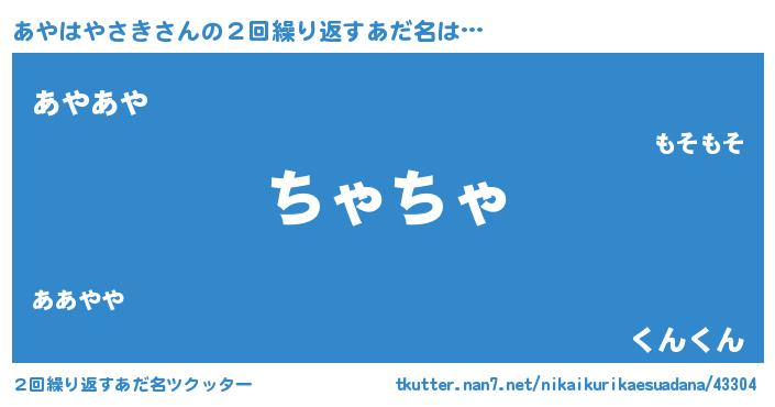 | 欧米人風あだ名 | 『あやはやさき・ステッグマイヤー』 |