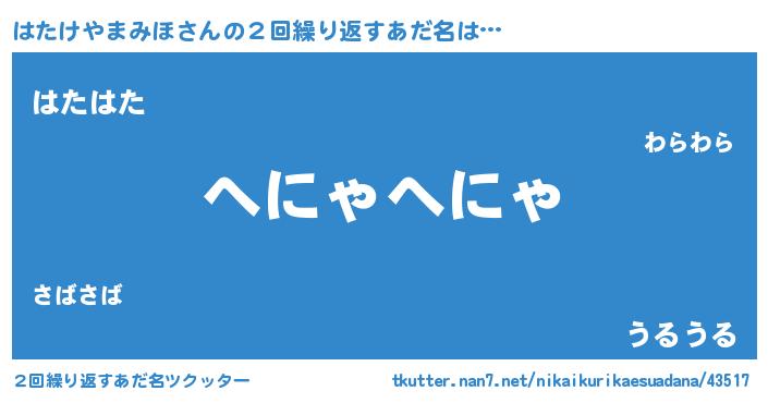 | 男性向けラノベタイトル風あだ名 | 『はたけやまみほに滅ぼされるだけの簡単なお仕事です』 |