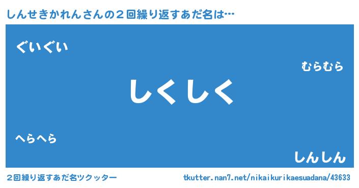 | 意味不明あだ名 | 『住所不定無職しんせきかれん(9歳)』 |