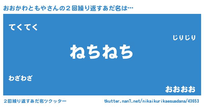 | 意味不明あだ名 | 『とにかく怪しいおおかわともや』 |