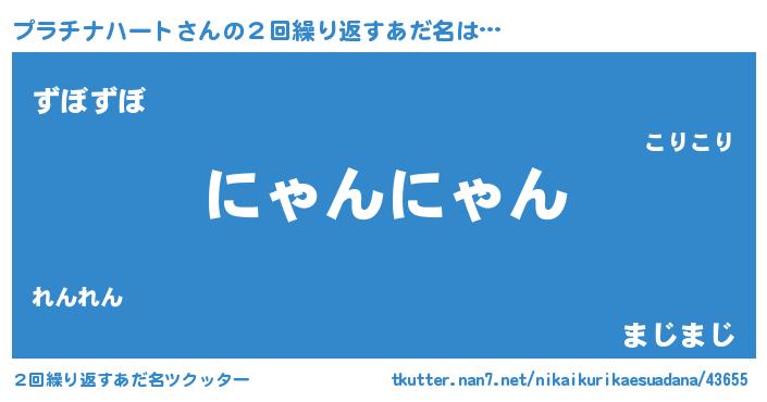 | 女子向けラノベタイトル風あだ名 | 『プラチナハートの卵を拾いまして』 |