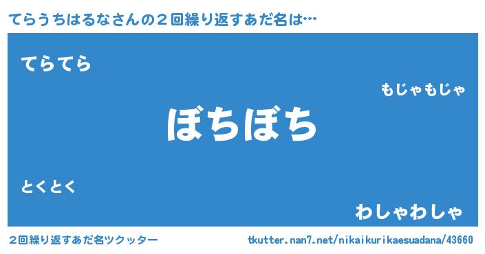 | 男性向けラノベタイトル風あだ名 | 『ノーゲーム・ノーテラウチハルナ』 |