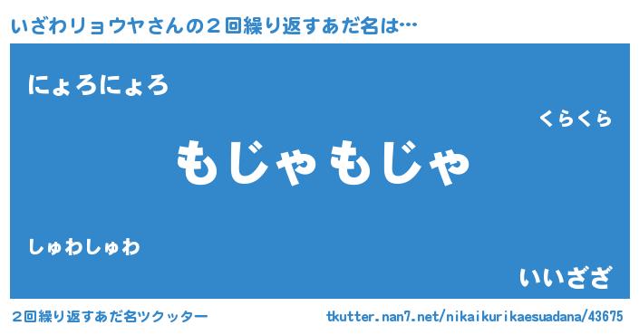| 男性向けラノベタイトル風あだ名 | 『Re:いざわリョウヤから始める異世界生活』 |