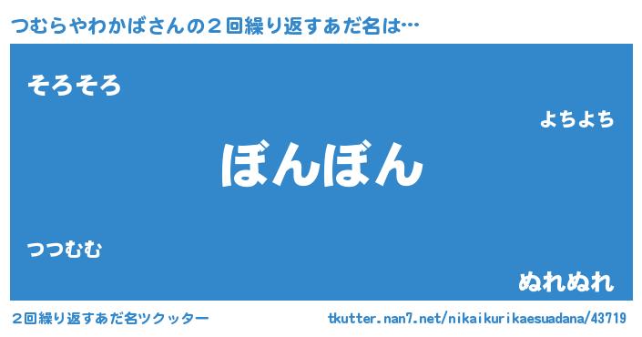 | ポケモン風あだ名 | 『ツックウザ』『ツームイ』 |