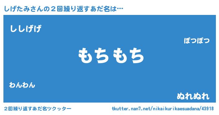 | 男性向けラノベタイトル風あだ名 | 『Re:しげたみから始める異世界生活』 |
