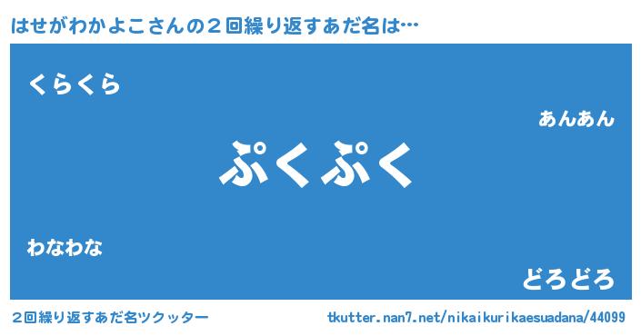 | ヘコむあだ名 | 『はせがわかよこ(苦笑)』『はせっ子』 |