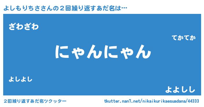 | 欧米人風あだ名 | 『ウサインよしもりちさ』 |