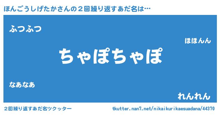 | 欧米人風あだ名 | 『ほんごうしげたか・ステッグマイヤー』 |