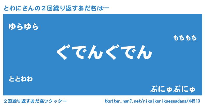 | 女子向けラノベタイトル風あだ名 | 『とわにの契約王妃』『死神とわにの再婚』 |