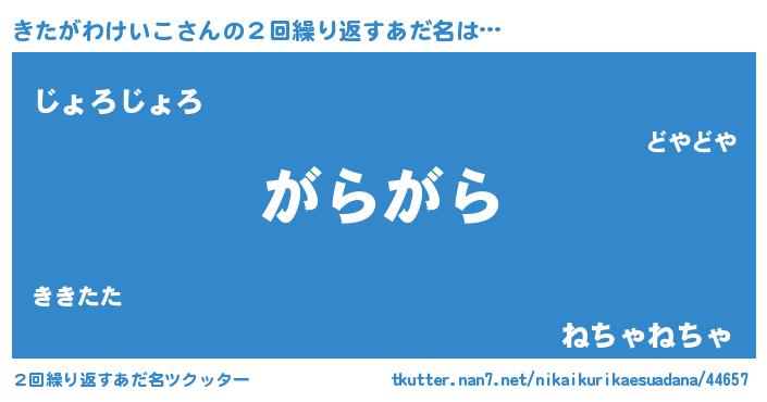| ヘコむあだ名 | 『きたがわけいこ(苦笑)』『きたを』 |