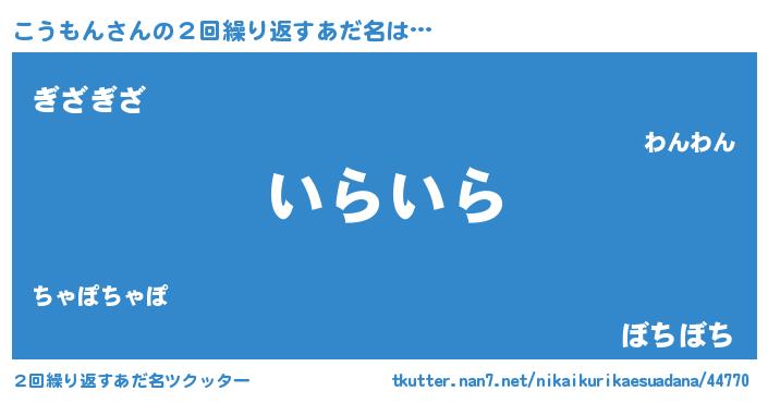 | ピコ太郎風あだ名 | 『コウ二郎』『ピココ郎』『ココ太郎』 |