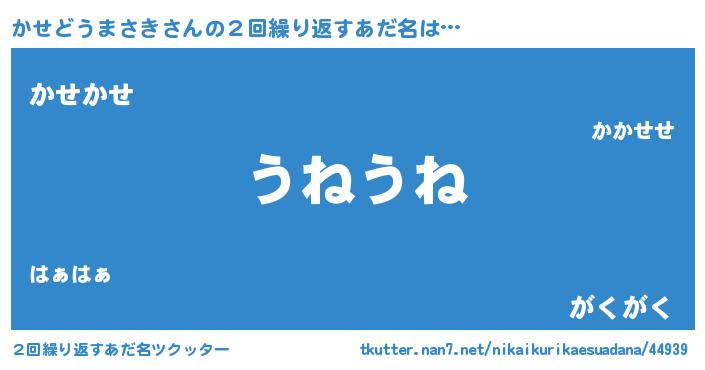| 欧米人風あだ名 | 『ウサインかせどうまさき』 |