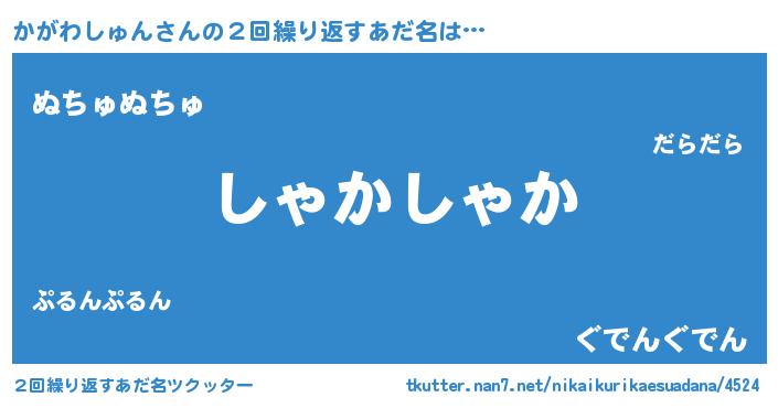 | ヘコむあだ名 | 『かがっちょ』『かがわしゅん(震え声)』 |