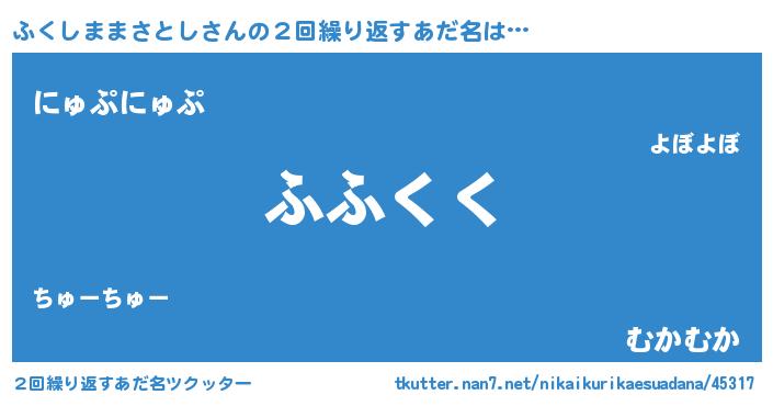 | 意味不明あだ名 | 『ふくしままさとしフォーエバー』 |
