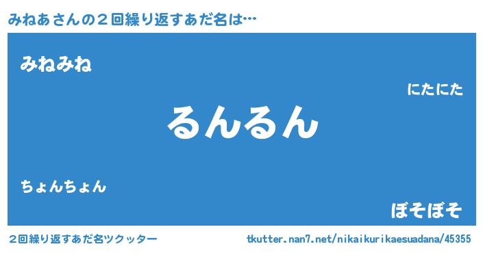 | 欧米人風あだ名 | 『トリンドルみねあ』『マイケルみねあ』 |