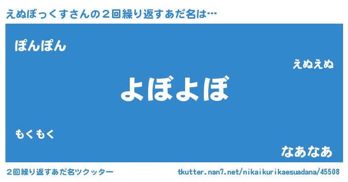 | ピコ太郎風あだ名 | 『エエ太郎』『エヌ八郎』『エコ三郎』 |