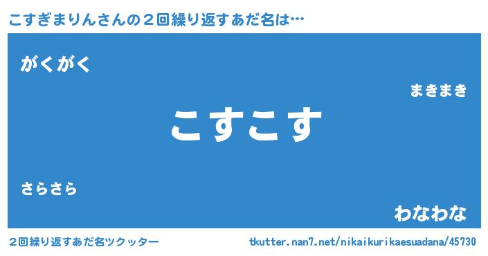 | ヘコむあだ名 | 『こすにゅー』『こすぎまりん(小並感)』 |