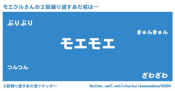 男性向けラノベタイトル風あだ名 | 『モエクルの憂鬱』『魔弾の王とモエクル』 |