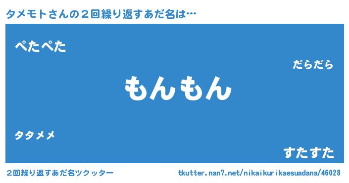 | 男性向けラノベタイトル風あだ名 | 『Re:タメモトから始める異世界生活』 |