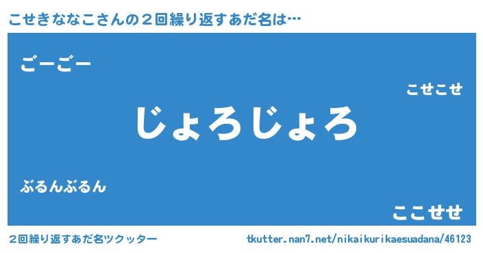 | 意味不明あだ名 | 『住所不定無職こせきななこ(11歳)』 |