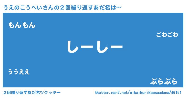 | ヘコむあだ名 | 『うえのこうへい(遠い目)』『レバニラ』 |
