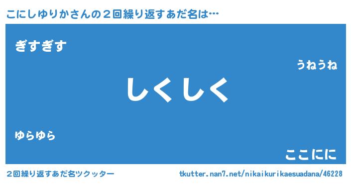 | ヘコむあだ名 | 『こにしゆりか(苦笑)』『豆乳』 |