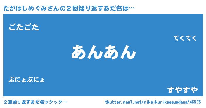 | 意味不明あだ名 | 『とにかく怪しいたかはしめぐみ』 |