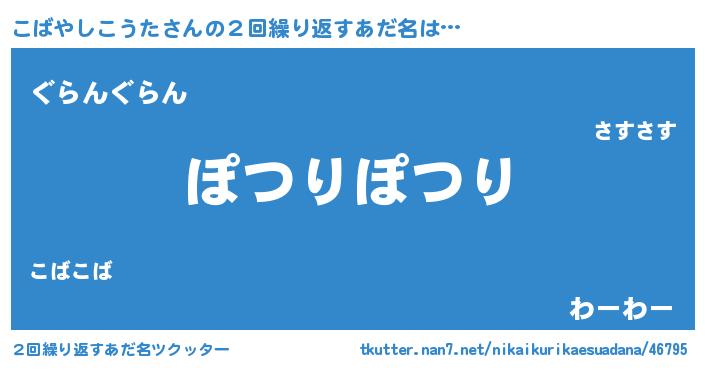 | 胡散臭い通販商品みたいなあだ名 | 『モンドセレクションを受賞した隕石のかけら…その名も「こばやしこうた」』 |