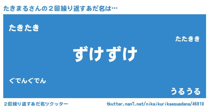 | 意味不明あだ名 | 『住所不定無職たきまる(2歳)』 |
