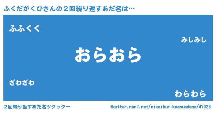 | ピコ太郎風あだ名 | 『フク四郎』『ピフ十郎』『フフ太郎』 |
