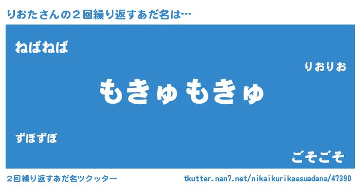 | 男性向けラノベタイトル風あだ名 | 『Re:りおたから始める異世界生活』 |