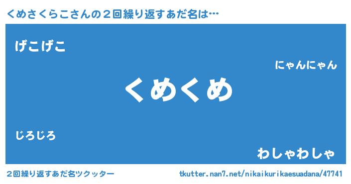 | ヘコむあだ名 | 『くめもー』『くめさくらこ(爆)』 |