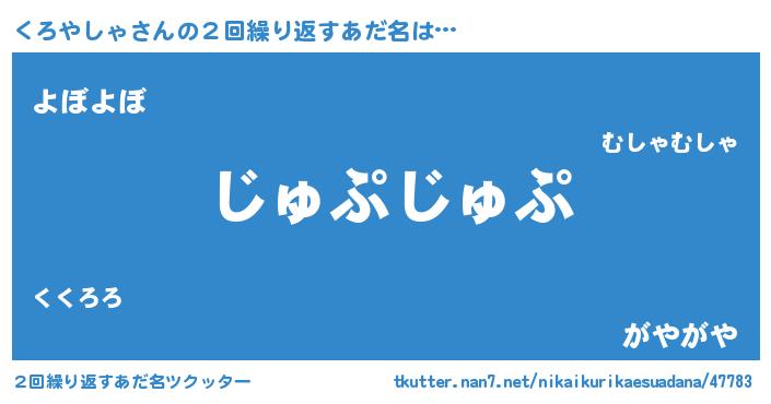 | 意味不明あだ名 | 『住所不定無職くろやしゃ(98歳)』 |