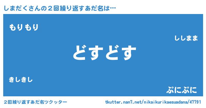 | 男性向けラノベタイトル風あだ名 | 『うちのしまだくが世界を掌握している!』 |