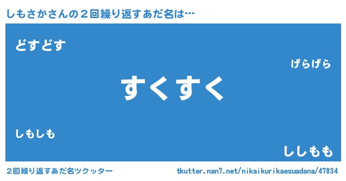 | ヒーロー風カッコイイあだ名 | 『仮面シモダー』『ウルトラしもさかマン』 |