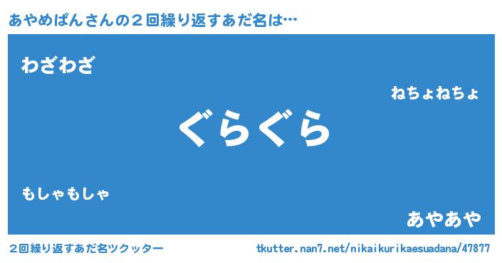 | ヘコむあだ名 | 『あやめぱん(震え声)』『あやにゅー』 |