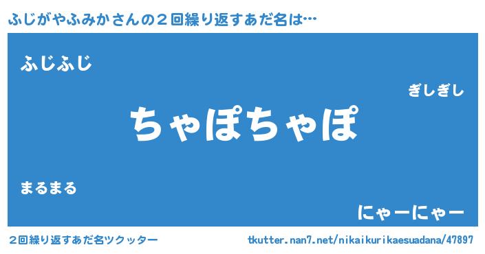 | ヒーロー風カッコイイあだ名 | 『スーパーフジガヤフミカ』 |
