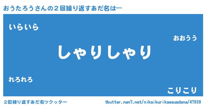 | 男性向けラノベタイトル風あだ名 | 『魔弾の王とおうたろう』 |