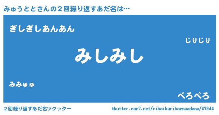 | 意味不明あだ名 | 『自称みゅうとと』『永久保存みゅうとと』 |