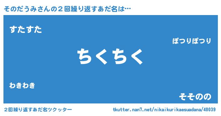 | 料理風あだ名 | 『栗とそのだうみのマフィン』 |