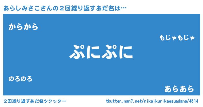 | ヘコむあだ名 | 『あらしみさこ(爆)』『あらにゅー』 |