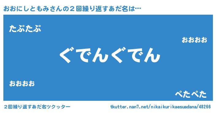| 意味不明あだ名 | 『永久保存おおにしともみ』 |
