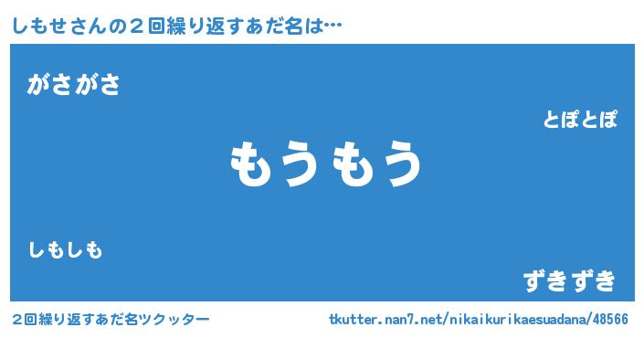 | 男性向けラノベタイトル風あだ名 | 『Re:しもせから始める異世界生活』 |