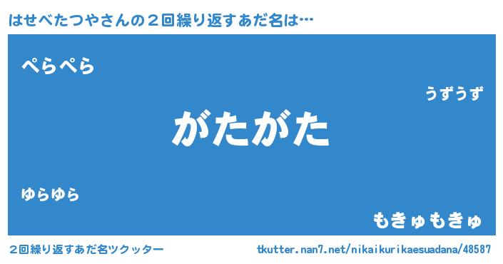 | ヘコむあだ名 | 『はせべたつや(爆)』『はせっぺ』 |