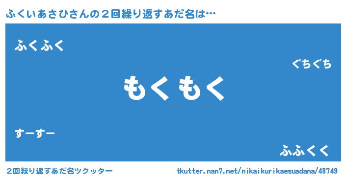 | 意味不明あだ名 | 『自称ふくいあさひ』 |