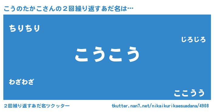 | ヒーロー風カッコイイあだ名 | 『スーパーコウノタカコ』『仮面コウダー』 |