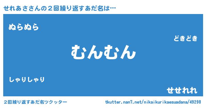 | 意味不明あだ名 | 『自称せれあさ』『せれあさフォーエバー』 |