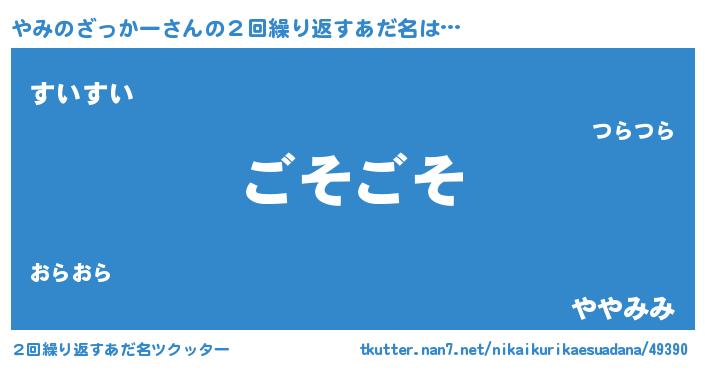 | ヘコむあだ名 | 『やみのざっかー(震え声)』『なまこ酢』 |