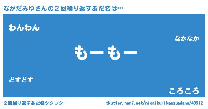 | 意味不明あだ名 | 『自称なかだみゆ』『永久保存なかだみゆ』 |