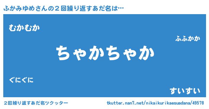 | 意味不明あだ名 | 『自称ふかみゆめ』『永久保存ふかみゆめ』 |